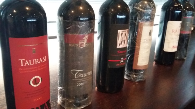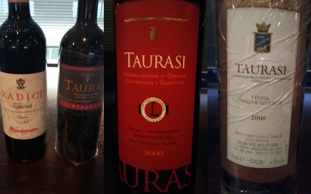 1) Ho introdotto la degustazione invitando i compagni di tavola a focalizzarsi più sugli aspetti interpretativi che su quelli strettamente millesimali, come invece era naturalmente accaduto con le retrospettive Greco e Fiano (link e link). Siamo andati a (ri)testare una serie significativa di Taurasi usciti sul mercato da oltre due lustri, figli di due vendemmie fortemente connotate nell’andamento caldo e generoso, ma soprattutto di un’epoca stilistica ben riconoscibile. Proprio nel biennio 2000-2001, infatti, l’idea del presunto “grande vino” è stata esplorata alla massima intensità nella ricerca di potenza, concentrazione, colore, glicerina. Non solo in Irpinia, naturalmente, ma è facile immaginare cosa abbia significato tale tendenza per i rossi da aglianico, che in quella fase storica venivano annunciati come the next big thing internazionale, specialmente nelle espressioni più opulente e masticabili.