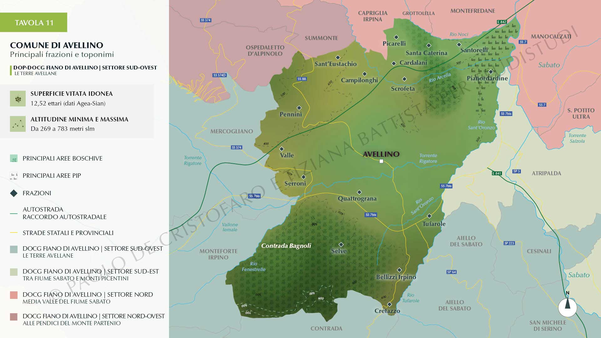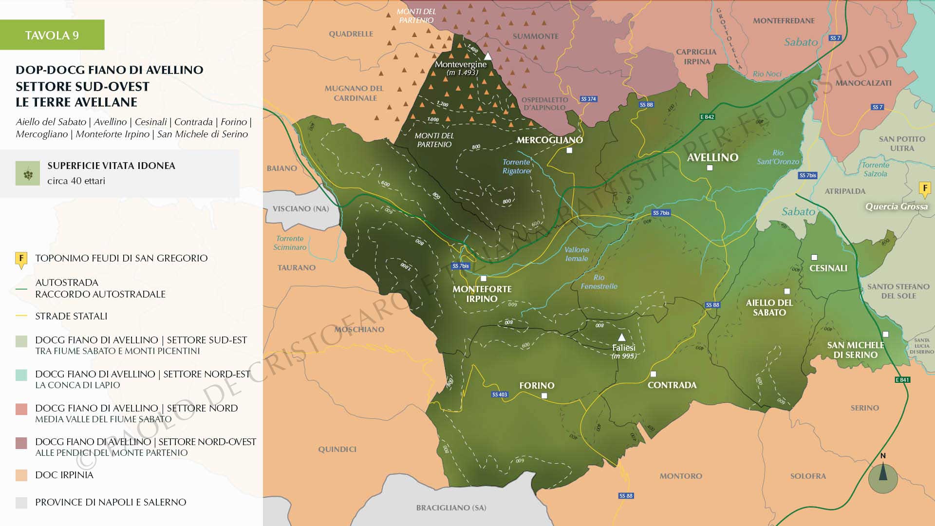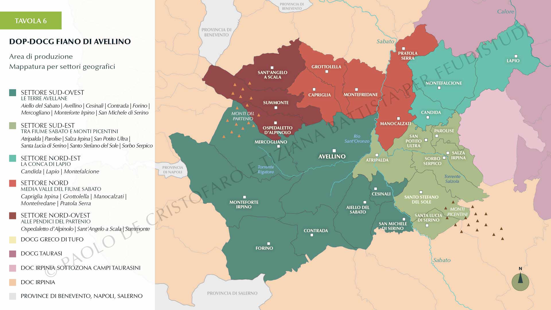 Un ulteriore zoom apre la terza parte, dedicata all’approfondimento dei toponimi che battezzano i vini bianchi da fiano prodotti nell’ambito del progetto FEUDISTUDI. Frazioni, contrade e menzioni potenzialmente prese in considerazione anche per eventuali Unità Geografiche Aggiuntive, là dove un giorno le aziende della provincia di Avellino decidessero di dotarsi di questo prezioso strumento normativo per i propri vini a denominazione.